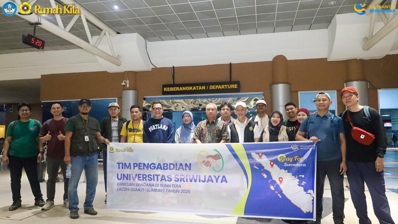 Universitas Sriwijaya (UNSRI) melepas tim relawan kemanusiaan untuk menyalurkan bantuan kesehatan dan sembako bagi korban bencana banjir yang melanda sejumlah wilayah di Provinsi Aceh. Pelepasan relawan dipimpin langsung oleh Rektor UNSRI, Prof. Dr. Taufiq Marwa, S.E., M.Si. di Bandara Sultan Mahmud Badaruddin II Palembang, Kamis (11/12/2025).